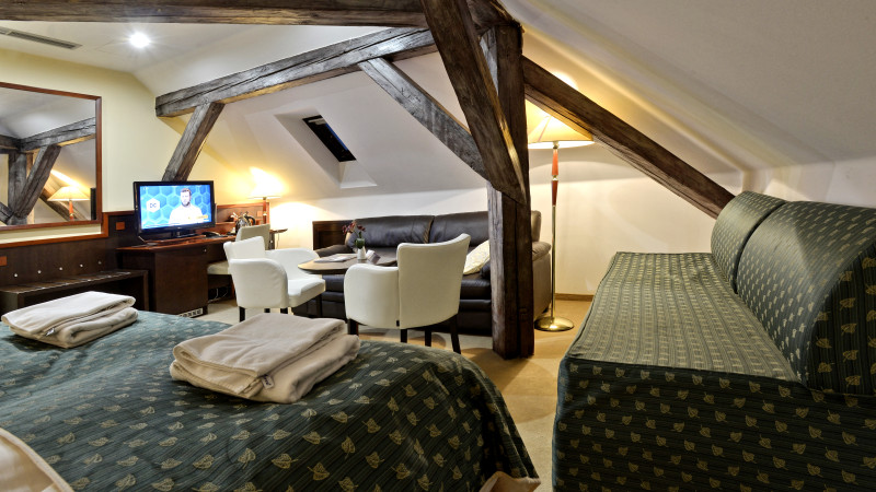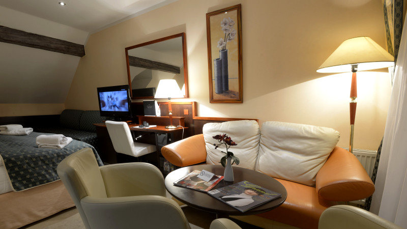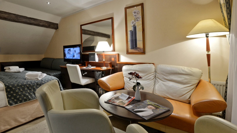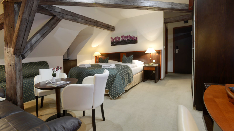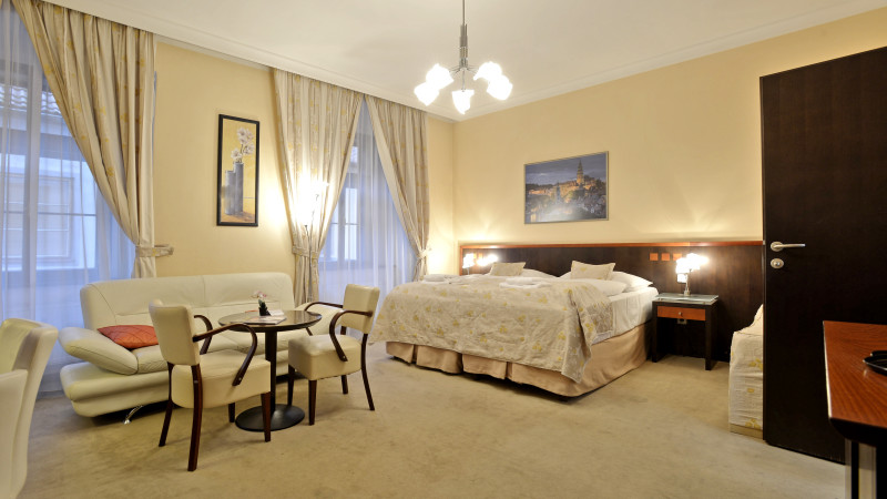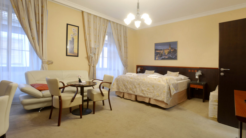 edná se o prostorný a moderně zařízený pokoj se satelitní led TV, minibarem a koupelnou s vanou nebo sprchou. Možné rezervovat twin nebo king size bed.