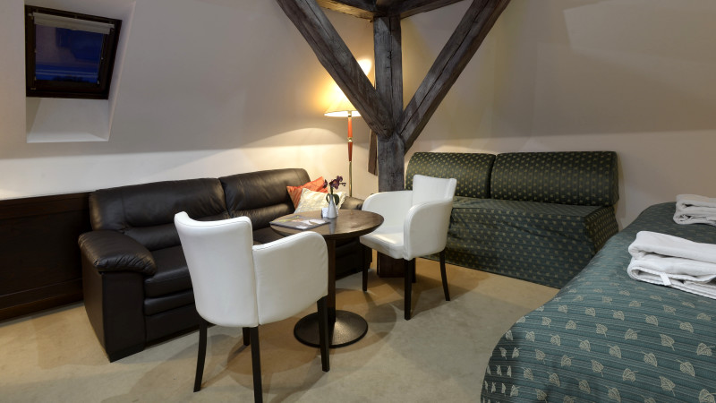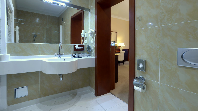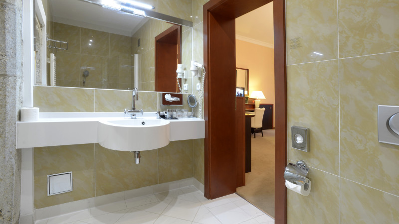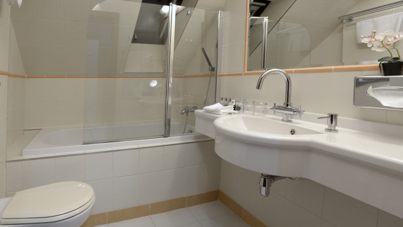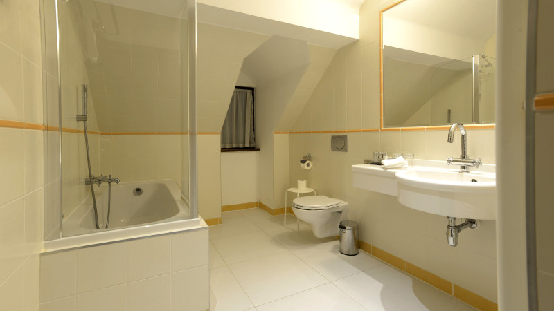 Velikost pokoje je individuální od 25m2, na pokoji king size bed a jedna single bedVybavení koupelny: